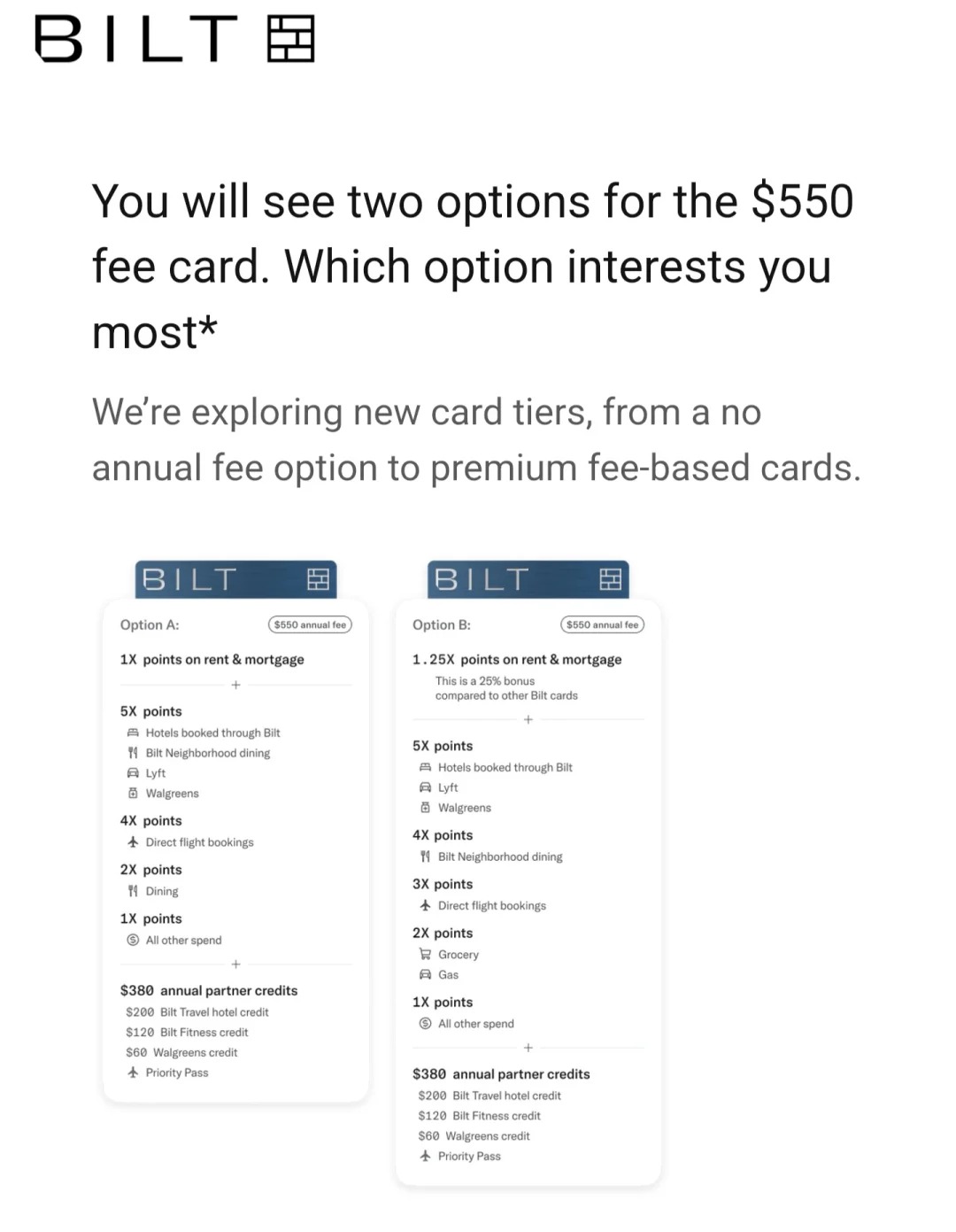 今天正式收到了Bilt 2.0官方调查邮件,第一时间来给大家更新了!更炸裂的消息是,Bilt正在筹备推出年费版本,那么,楼主来解读一下,欢迎大家分享意见。